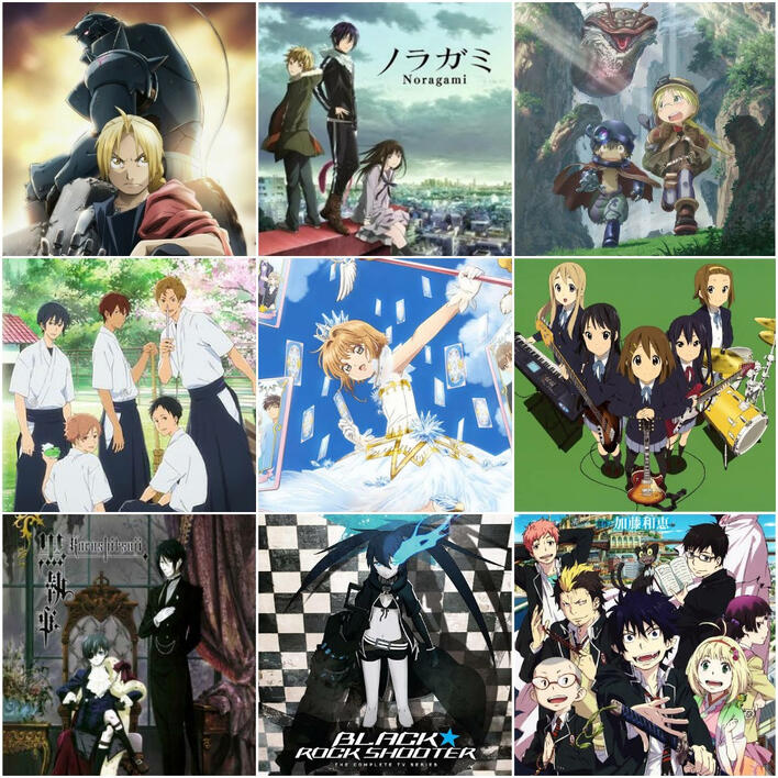 ★ Fav Anime: Fullmetal Alchemist, Ao no Exorcist, Noragami, Made in Abyss, K-ON, Shugo Chara, Kuroshitsuji, Barakamon, Kobayashi-san Chi no Maid Dragon, Black Rock Shooter, Black Bullet, Gugure! Kokkuri-san, Hyouka, Galilei Donna, Tsurune, Hitoribocchi no Marumaru Seikatsu, Hanayamata, Cardcaptor Sakura, and more~
